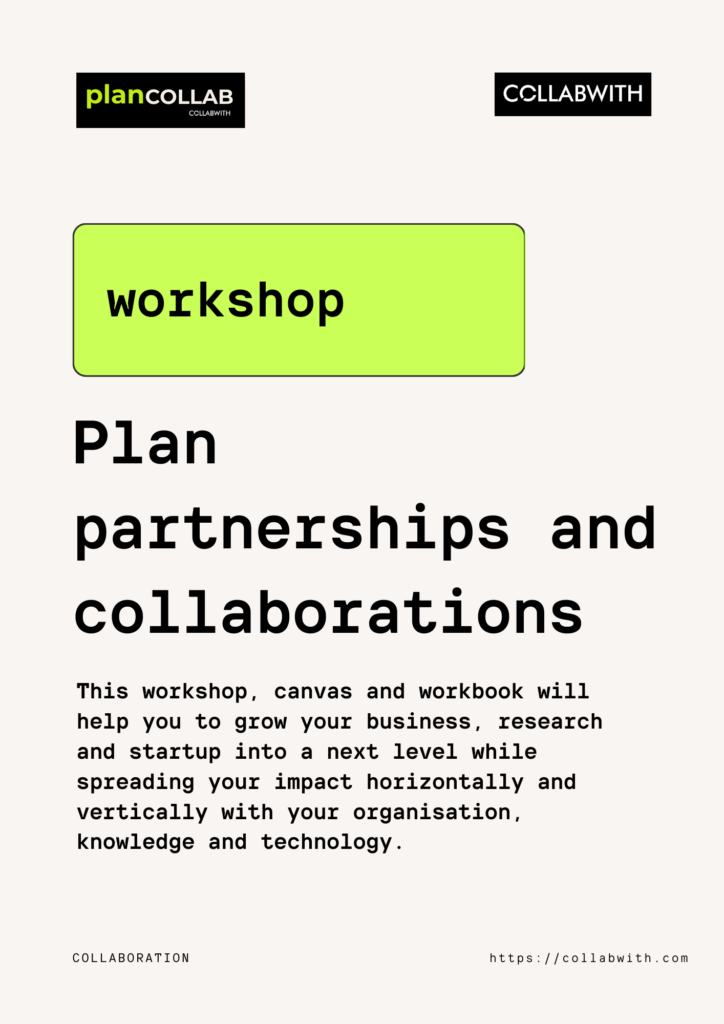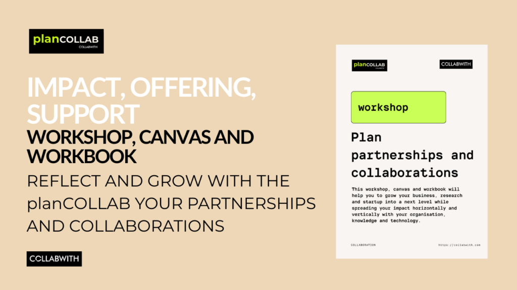 planCOLLAB, this workshop, canvas and workbook will help you to grow your business, research and startup into a next level while spreading your impact horizontally and vertically with your organisation, knowledge and technology.