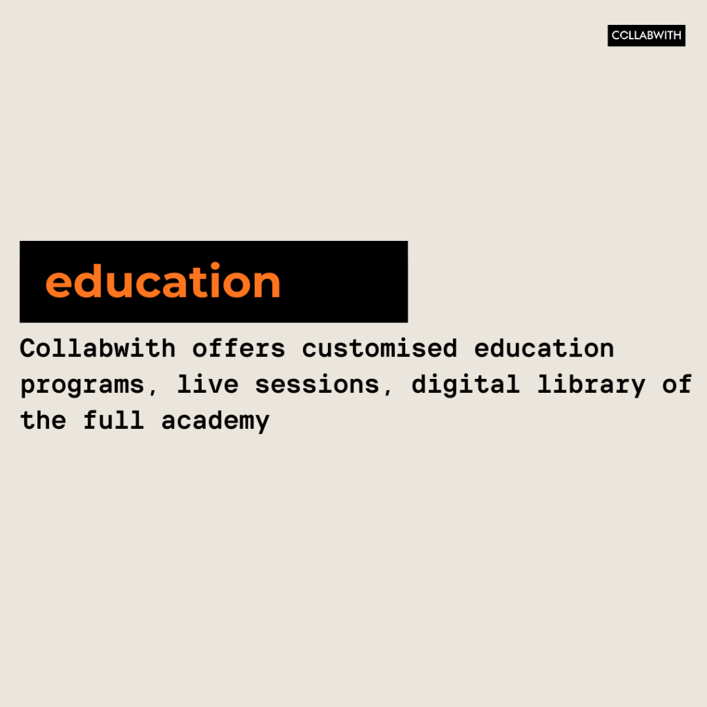 Collabwith offers customised education programs, live sessions, digital library of the full academy